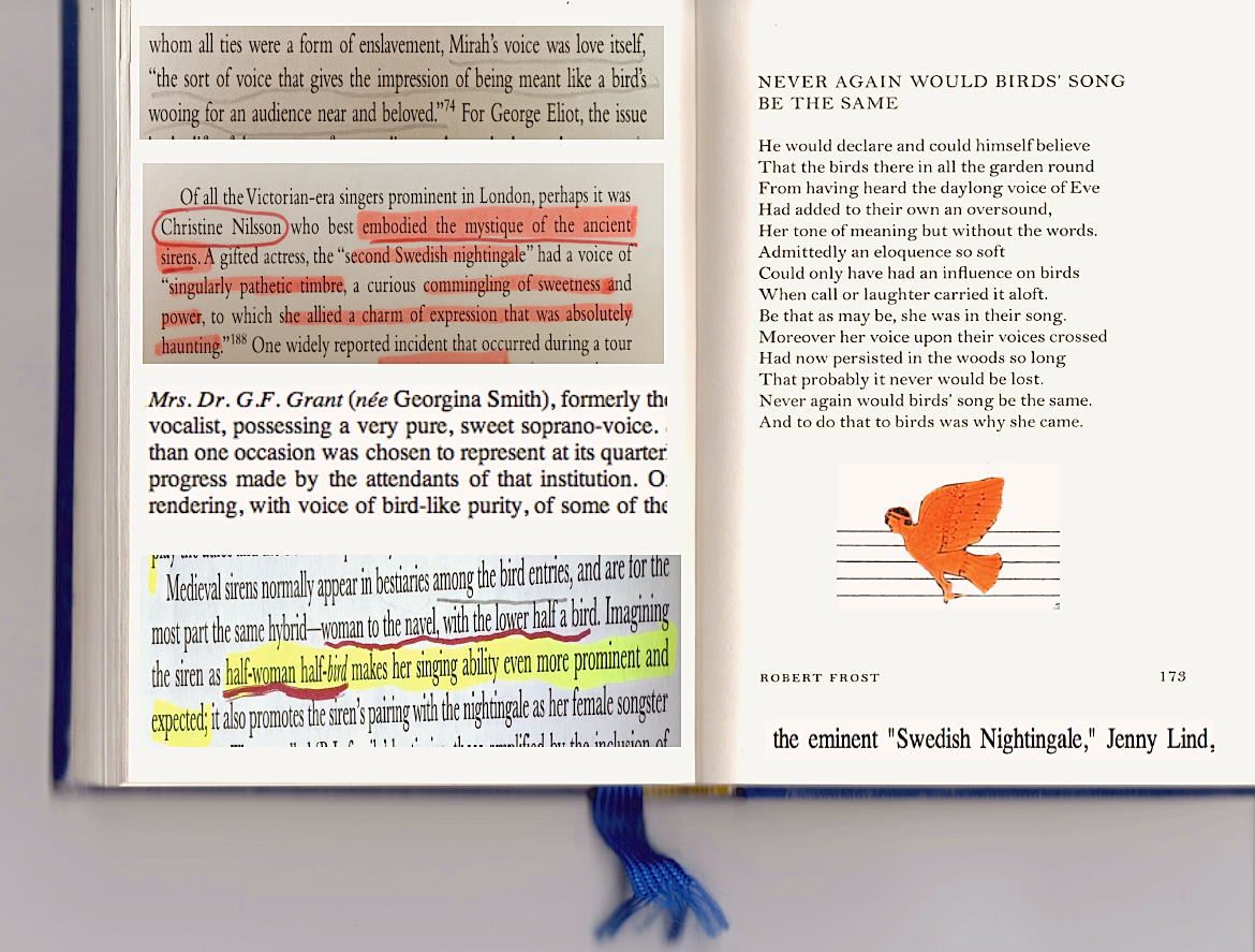 Sources: McClatchy, J.D. (ed.), On Wings of Song, New York: Random House, 2000; Gillett, Paula, Musical Women in England, 1870-1914: “Encroaching on All Man’s Privileges.”, New York: St. Mary’s Press, 2000 (p. 158; p. 185 ); Trotter, James M., Music and Some Highly Musical People, Boston: Lee and Shepard, 1878 (p. 292); Leach, Elizabeth Eva, “‘The little pipe sings sweetly while the fowler deceives the bird’: Sirens in the later Middle Ages”, in Music & Letters, 87 (2), 2006, (p. 192).