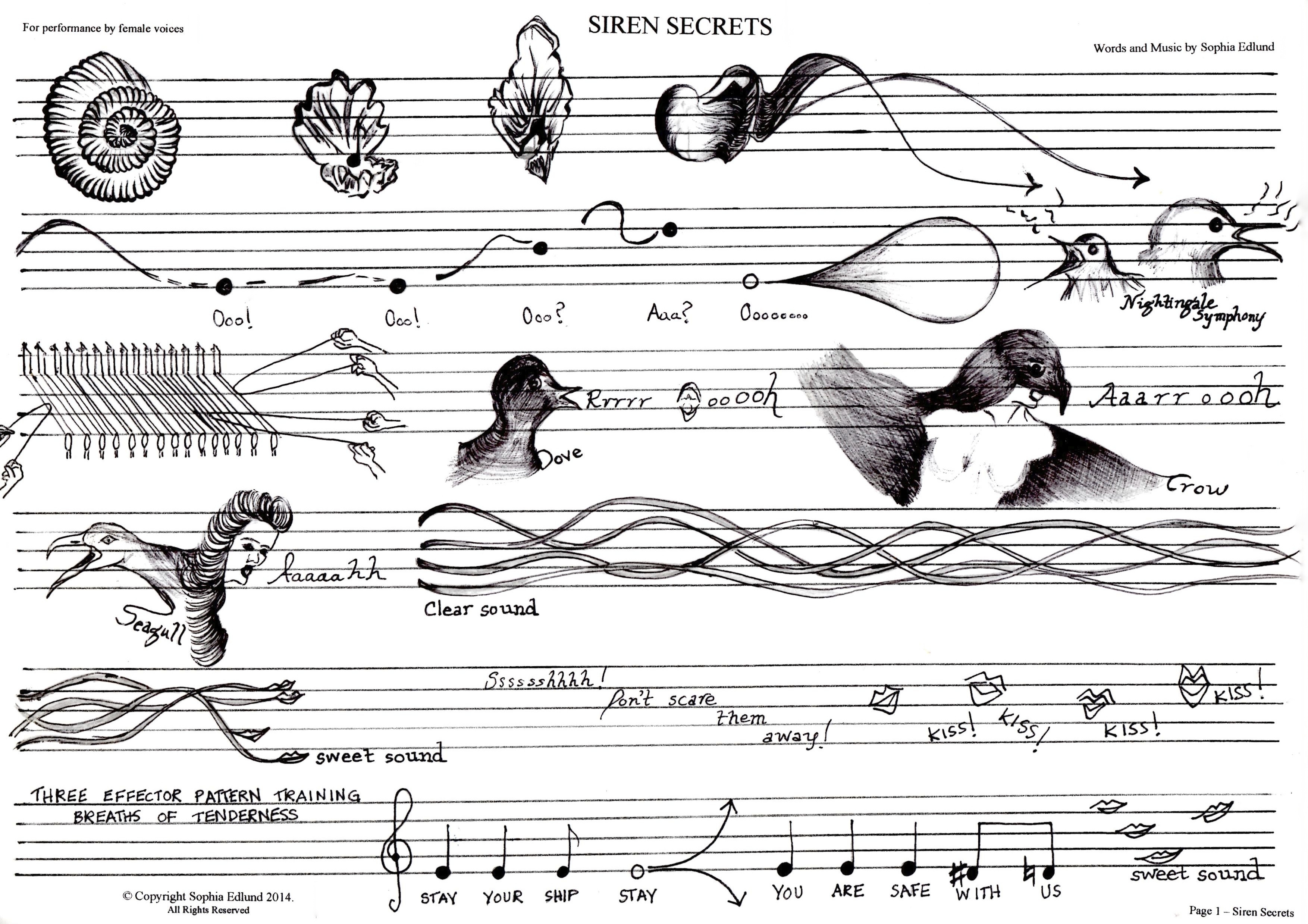 Sirens’ secrets score | 2014 Sirens’ secrets Score 2014 | For four female voices ©Sophia Edlund Extract from Sirens’ secrets Score